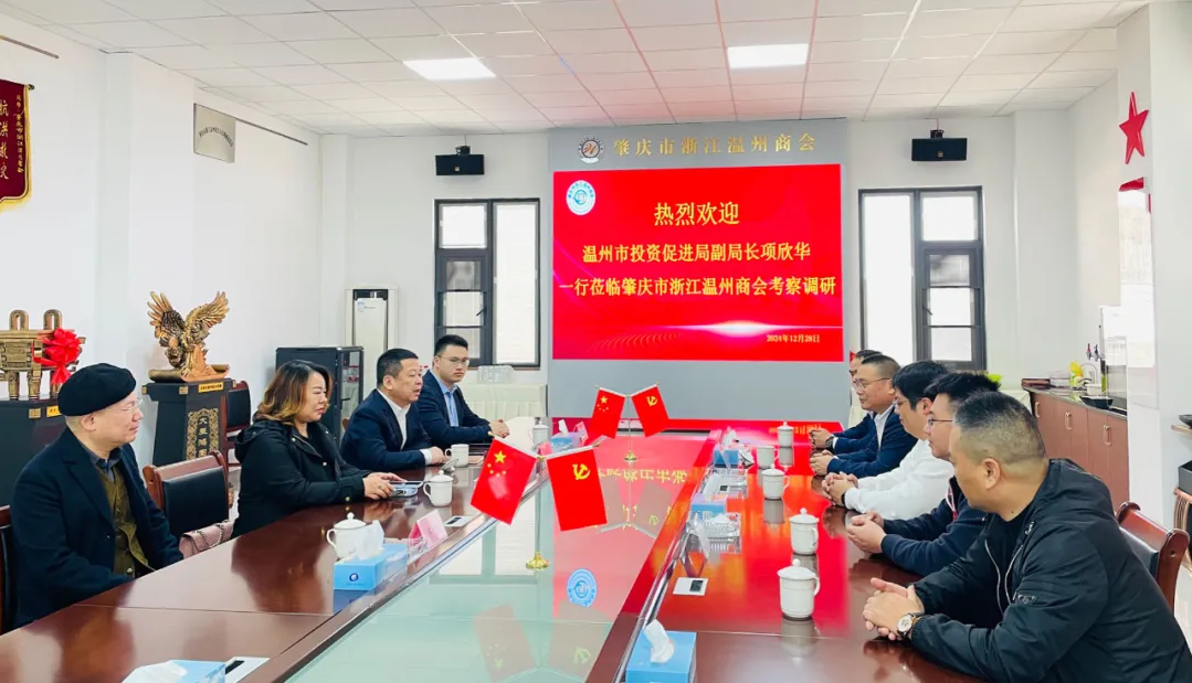 项欣华副局长在讲话中高度肯定了肇庆市浙江温州商会的建设发展和取得的成绩。他表示,市领导对异地温州商会建设高度重视,温商回归不仅是经济上的回归,更是情感上的回归。他强调,商会要进一步做好在外温商的信息调查工作,与市投促局携手打造并充分利用好在外温商信息公共服务平台。同时,他希望肇庆市浙江温州商会能够继续发挥示范引领作用,带动更多温商和知名企业为温州市的“强城行动”贡献力量。作为异地商会和在外温商的“娘家”,温州市投资促进局将继续全力支持肇庆市浙江温州商会积极回归家乡、建设家乡,为温州市新时代“两个健康”先行区和“千年商港、幸福温州”建设作出更大贡献。 此次考察座谈不仅加强了温州市投资促进局与肇庆市浙江温州商会之间的联系,也为双方未来的合作与发展奠定了坚实基础。双方表示将共同努力,推动两地温州商会的蓬勃发展,为温州市及肇庆市的经济社会发展贡献力量。
